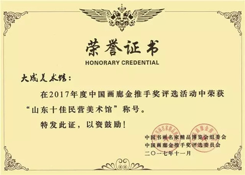 近年来,“中国画廊金推手奖”已成为山东省最具影响力和权威性的画廊评选活动。本次评选汇聚了省内外千余家画廊机构参选,经专家评审团层层筛选,大成美术馆以独特经典的场馆建筑,高学术、高规格的艺术展览,积极弘扬正能量的社会担当,广泛的社会影响力以及良好的服务口碑,赢得了社会各界尤其是艺术界的认可,在众多参选机构中脱颖而出。