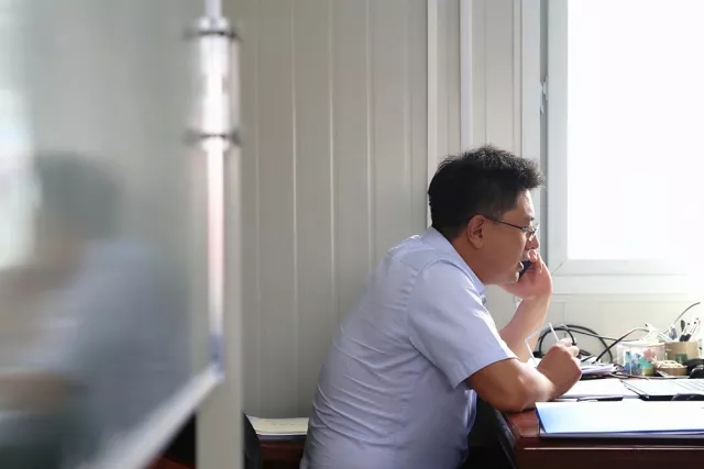 8:50济南齐鲁黄河大桥建设指挥部,我们如约见到了赵世超。一进入项目部“板房”办公室,他就立马打电话安排起了今天的工作,这种工作状态,早已是他熟悉的工作节奏。从2001年毕业开始,赵世超就一直住板房、跟工程,有着17年项目一线工作经验的他,是建设一线一名结结实实的“老将”。