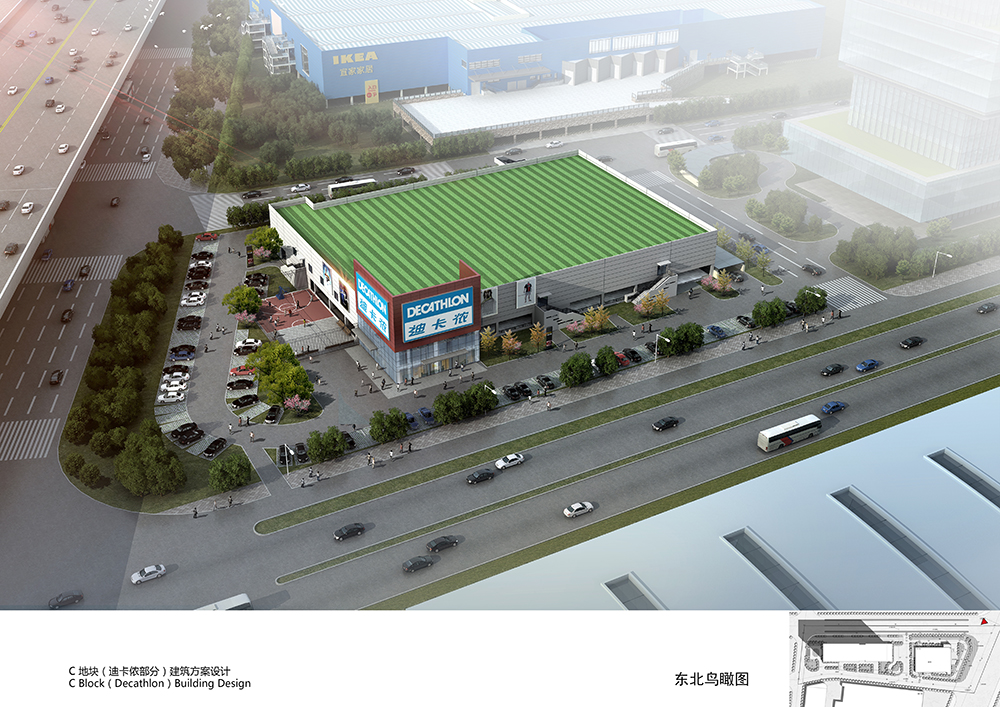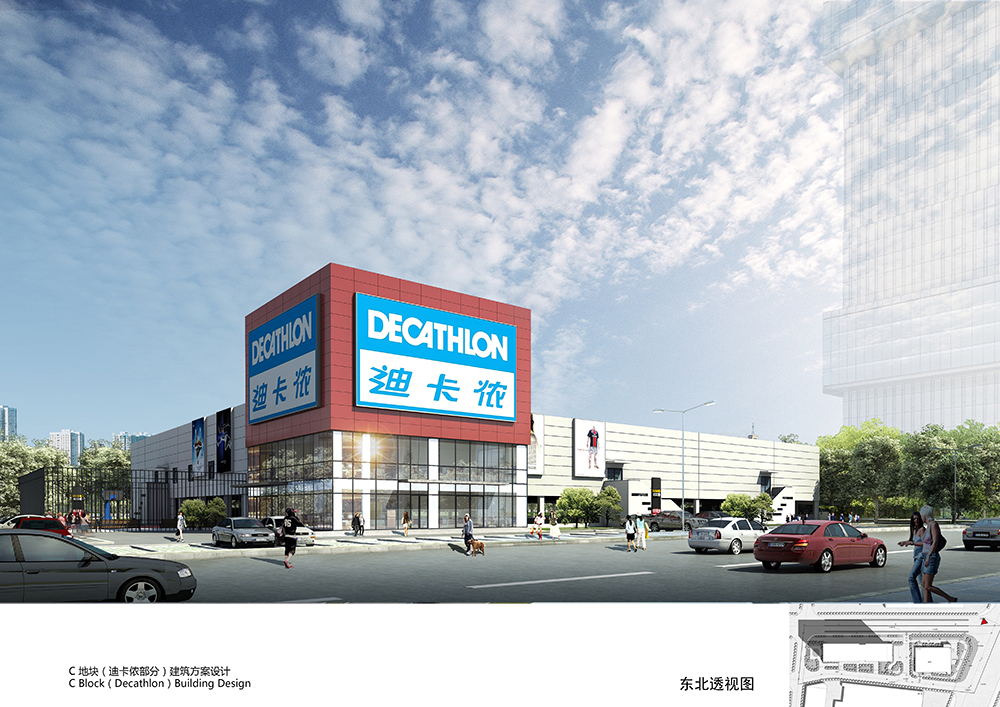 迪卡侬项目总计四层,地上共2层,地上建筑面积约9575平方米,首层使用功能为购物停车,二层功能为超市卖场及办公附属用房。地下共2层,为钢筋混凝土框架结构,主要功能为停车,停车方式是单层停车。停车场总共有三万多平方米,预计拥有车位1300个,为顾客解决了停车问题。