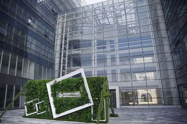 西进时代中心由世界领先绿色建筑专家、世界排名前十、欧洲最大的工程咨询公司瑞典SWECO担纲生态设计,先后获得“中国绿色建筑三星认证”和“美国LEED金级认证”等荣誉,是名副其实的绿色建筑集群,引领绿色环保新趋势,创享绿色办公新体验。项目中心外立面采用双层LOW-E中空玻璃,落地式玻璃幕墙容纳城市风景,打造流动式外立面风景,阳光下,深蓝色外立面挺拔、典雅,尽显高端商务形象,在天空的映衬下,璀璨夺目。