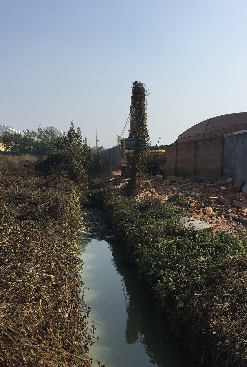 在该水体整治前,河道周边居民及工厂污水直接排入河道,污染水体,致使河水黑臭,影响周边居民生活质量。2017年5月,由集团负责的美里东路至新沙工业园五街段整治工程正式开工,本工程实施主要完成2.6公里虹吸干渠河道的清淤,共清运淤泥4万余方。新建排污管道1700余米,沿线收集了以往直接排入河道的污水,从根源上对污水进行了截留。将截留的污水通过新建的污水管道流入市政管网进而进入污水处理厂进行处理。在虹吸干渠两侧修建1公里长的管理路,新建一座桥梁,完成了河道两侧3万余平方米的景观绿化工程,工程于2018年2月顺利通过竣工验收。