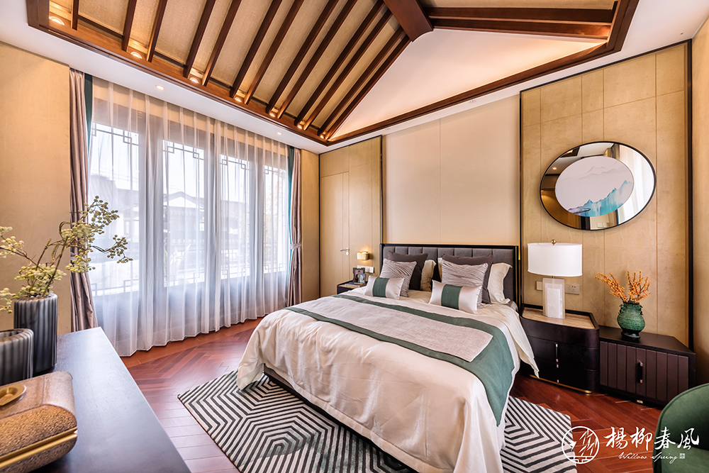 此次对外开放的样板房一种为新亚洲风格,以“礼”、“乐”为创作灵感,巧妙借用了中式园林框景的手法来演绎时尚的气质,将室外园林造景与室内装饰相结合,是古典与现代的一次碰撞。在空间布局上,多处采用中轴对称的传统中式手法,大气之中也展现着家族礼序。南北双庭院、连接私享露台的主卧套房、挑空设计的大面积地下空间,处处彰显着大家风范,在古朴的韵味中体现出一份现代的质感。