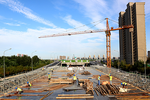 桥梁顶升结束后,将对103#~105#墩采用断柱顶升接高墩柱的方法进行施工,墩柱顶升完成后,再对全桥进行墩柱连接和桥台改造,最后施工支座垫石及支座安装,安装支座后进行落梁工作。项目计划9月底完成高架段主体结构,后续将进行防撞墙、声屏障、桥面、路灯、交通设施等施工。确保2019年1月1日实现北园大街快速路西延高架段通车,地面快速路将于2019年6月底通车。