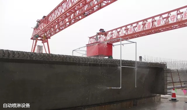 工程采取了多项科技创新技术,全程自动喷淋作业,电磁阀控制自动喷淋设备,可扇形喷雾,达到全天候、全湿润、无遗漏养生标准,养生效果极为显著。