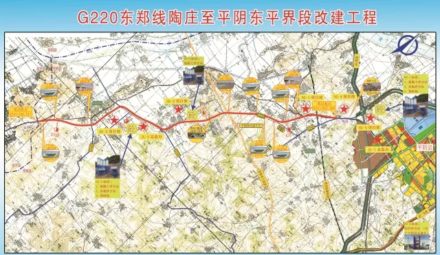 国道220平阴段改建工程是积极打造的省级精品示范工程之一,起点位于国道220平阴县陶庄,途经玫瑰镇、东阿镇,终点位于平阴、东平界。全长19.4公里,概算投资约6.5亿元。