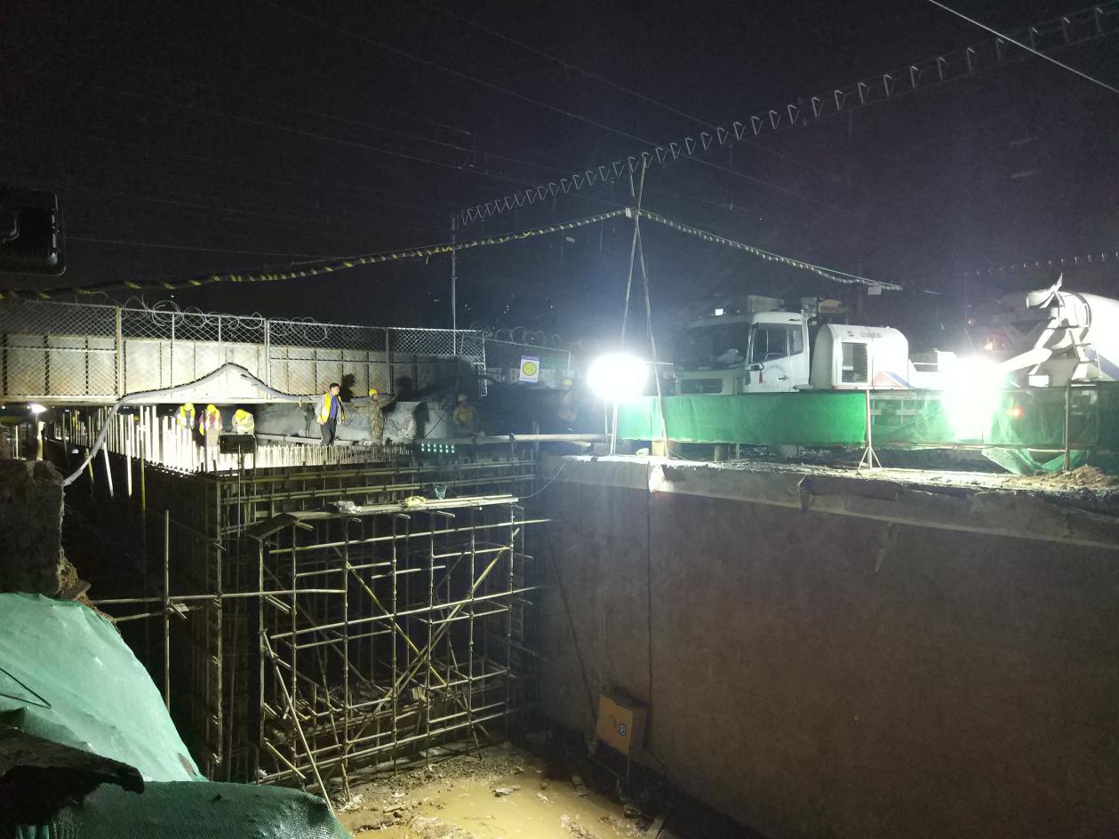 新建凤凰路穿越胶济铁路立交桥工程站场改造涉及工务、电务、通信、电力牵引供电专业立体交叉作业,各专业需同步作业,协调工作量大,交叉作业安全压力大。为确保六月份信号大要点顺利实施,五一期间,工程建设者们不分昼夜、加班加点,协调铁路部门设备管理单位全程监控配合;加强防护员与驻站联络员联系频率;加强安全文明管理工作。期间组织作业人员100余人次,圆满的完成了计划任务。
