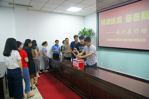 为全面践行习近平新时代中国特色社会主义思想,深入贯彻落实习近平总书记“精准扶贫、精准脱贫”要求,弘扬中华民族扶贫济困的传统美德,鼓励干部职工积极投身慈善事业,根据集团《关于开展2018年“精准扶贫慈善捐款”活动实施方案》的要求,6月15日下午,济南金衢公路勘察设计研究有限公司组织全体党员干部群众在第一会议室开展“精准扶贫慈善捐款”活动。