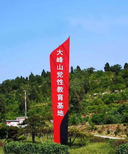 在大峰山革命历史纪念馆,讲解员详细介绍了大峰山革命根据地的发展壮大史,纪念馆内的历史图片、生动文字、详实数据,展示了革命先烈为中华民族的解放事业浴血奋战的英雄事迹。参观结束后,全体党员在“初心广场”重温入党誓词。
