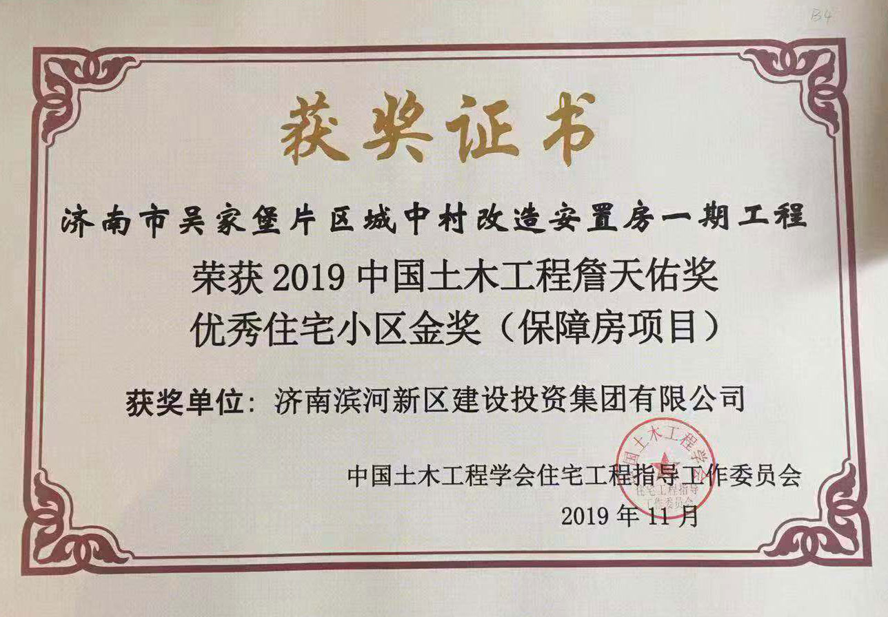 中国土木工程詹天佑奖是中国土木工程领域科技创新最高奖项,是经科技部核准,建设部认定,在住建部、铁道部、交通部、水利部的共同支持下主办的一项以“创新性、先进性、权威性”为评选标准的建筑奖项。为进一步扩大示范效应,自2004年起在中国土木工程詹天佑大奖下设中国土木工程詹天佑奖优秀住宅小区金奖。此次,吴家堡安置房一期项目获此殊荣,是行业对项目建设成果高度认可的体现,荣誉背后,承载着每一位建设者“承载城市梦想,建设美好生活”的企业使命。