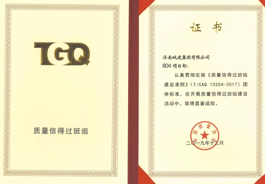 黄河路桥公司组织申报的“四分公司总工办”、同晟路桥“综合管廊施工班组”、银河路桥“市政工程检测室”三个班组经过市、省及全国行业协会的激烈竞争、层层筛选,从众多优秀班组中终脱颖而出,最终入选全国性质量管理组织——中国质量管理协会的班组评审,并最终荣获“全国质量信得过班组”荣誉称号。本次获奖三个班组依据《质量信得过班组建设准则》立足岗位实际,不断创新管理方法和手段,努力提高员工技能,提升班组凝聚力和执行力,并积极开展质量改进和创新活动,有效促进了班组产品质量和管理水平的提高。