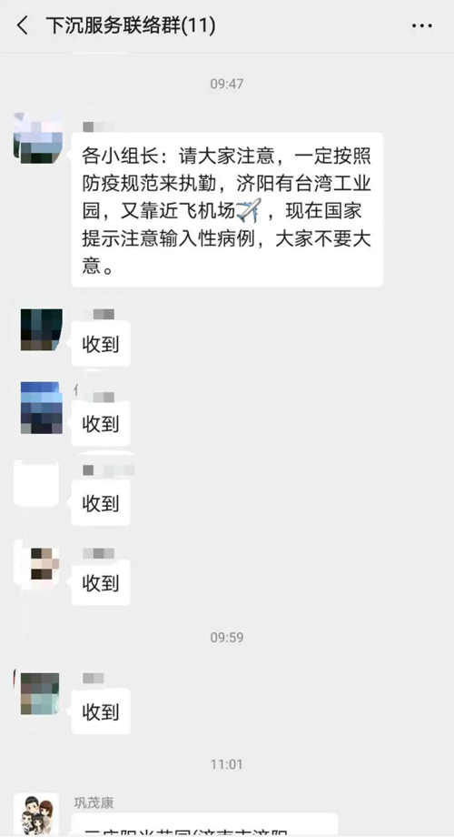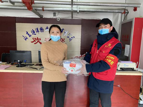 公司负责人来到社区慰问下沉服务的金曰金宇公司志愿者们,查看后勤保障、慰问下沉志愿者,鼓劲加油。