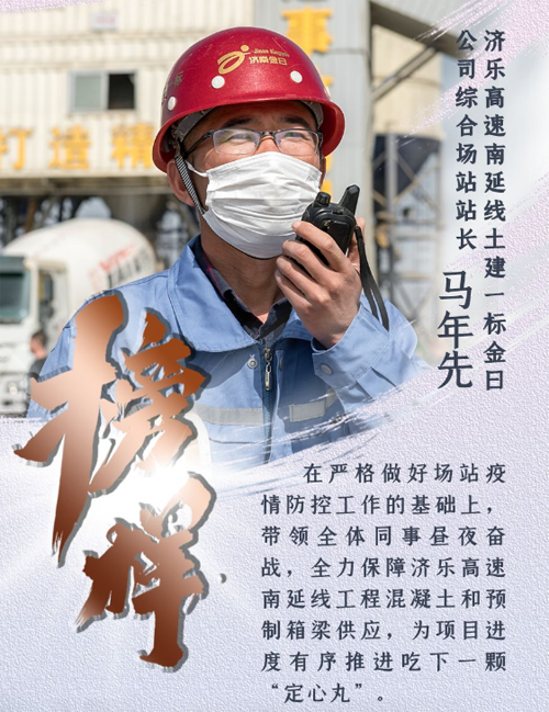 黄河北岸崔寨镇,济乐高速南延线土建一标金曰公司综合场站,站长马年先的办公室显得有些简陋。虽然门外的工地上一直进行着洒水等防尘措施,门内那仅有的几件家具上却也蒙了一层灰尘,唯独墙上一大幅生产形象进度图,经反复摩挲而一尘不染,涂满了五颜六色的笔迹,在这灰白色调的办公室中格外扎眼。新型冠状病毒肺炎疫情发生以来,马年先在严格做好场站疫情防控工作的基础上,带领全体同事昼夜奋战,全力保障济乐高速南延线工程混凝土和预制箱梁供应,为项目进度有序推进吃下一颗“定心丸”。