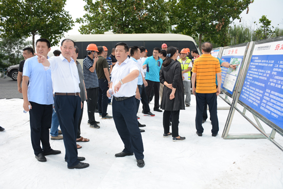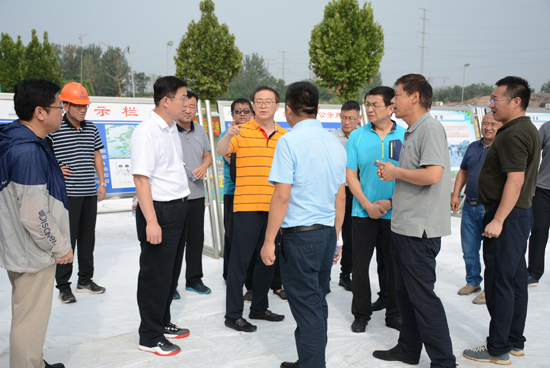 8月8日下午,济南市城乡交通运输局局长贾玉良,城市伟德国际1949党委书记、董事长张海平等一行,来到由集团公司承建的奥体西路齐烟揽华工程项目施工现场,察看工程建设情况。集团公司党委书记、董事长张明生,副总经理赵振华及分公司相关人员陪同察看。