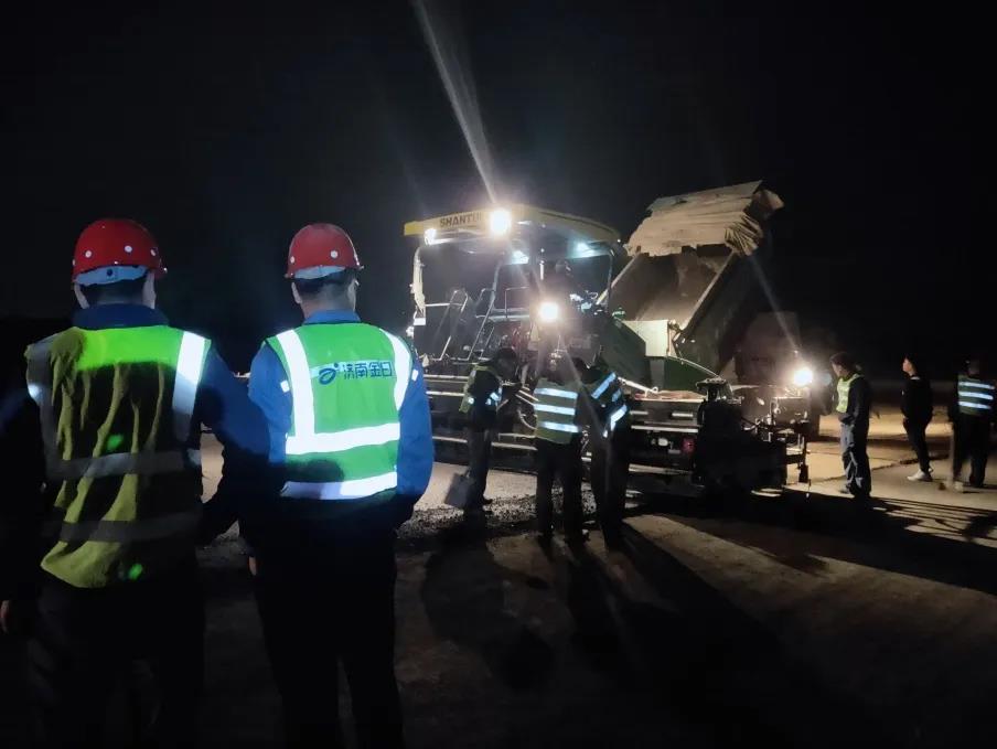 春节期间,预制梁也从未间断生产,为保证预制梁生产架设工作,综合场站内管理人员与工人共计20余人,始终坚守岗位,并组织成立青年突击队,进行交通导改、箱梁架设,顺利跨越青银高速(青岛至银川方向)。全面复工后,项目生产、防疫两手抓,为降低传播风险,根据实际情况进行分散施工,陆续在工地上开展了预制梁浇筑、架设、路基翻晒碾压、桥面凿毛、现浇梁施工、场地硬化等多个作业面。