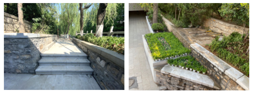 挡墙和步道充分利用原有石材,最大限度的进行原状恢复。