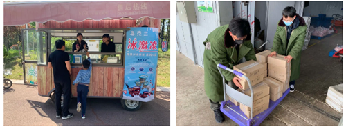 由于湿地暂缓开园,造成为开园准备的冰激凌积压,在华山园博园及印象济南等兄弟公司的大力协助下,公司最年轻的团队演艺班勇挑重担,牵头协调冰激凌销售。公司抽调各管理和服务岗位的35名员工,分赴华山湿地、园博园、印象济南三个景区设点销售冰激凌。
