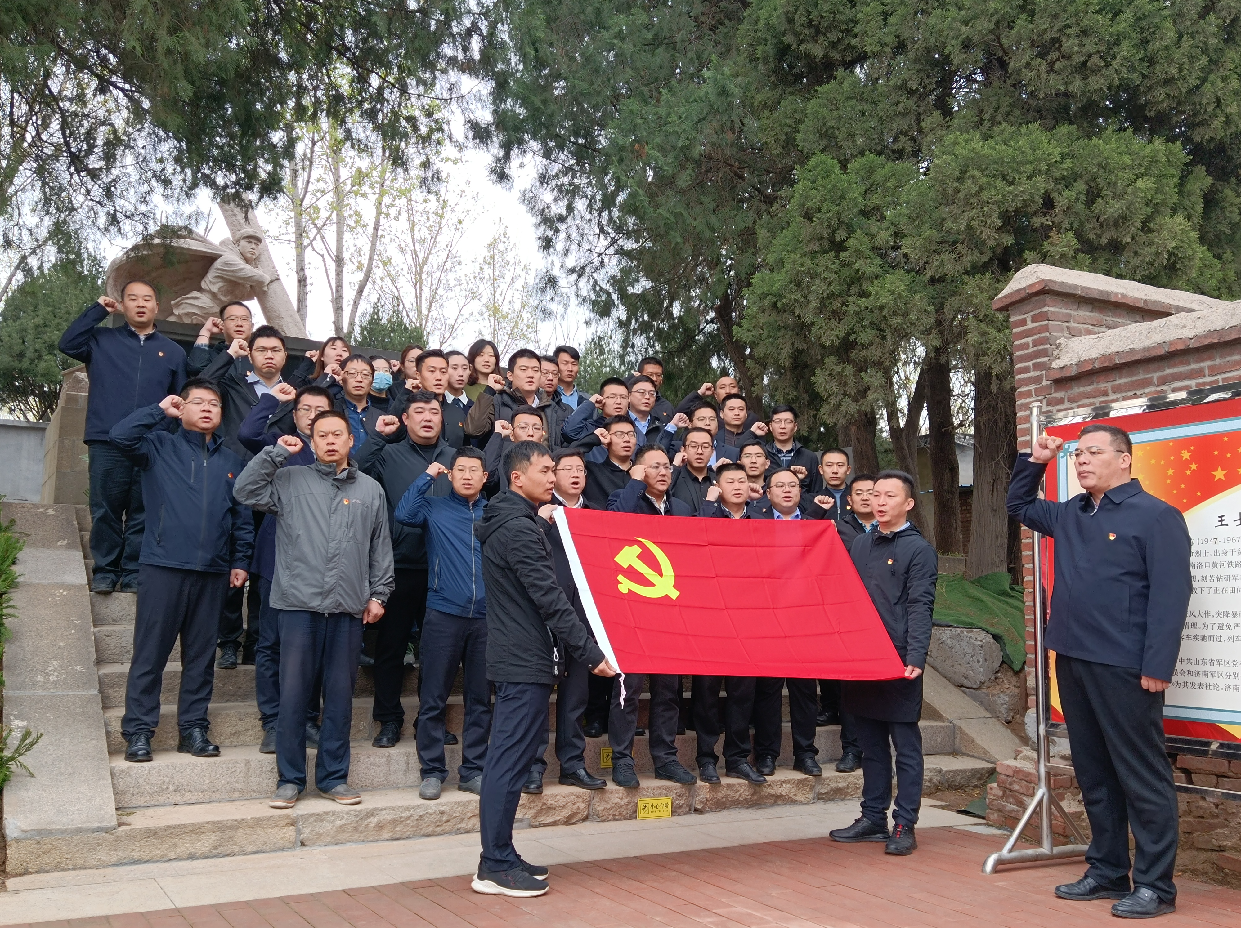 活动中,党员代表向王士栋烈士敬献花篮,党员们瞻仰烈士纪念碑、深情缅怀烈士功绩、寄托哀思并在中国共产党党旗的见证下,重温入党誓词。