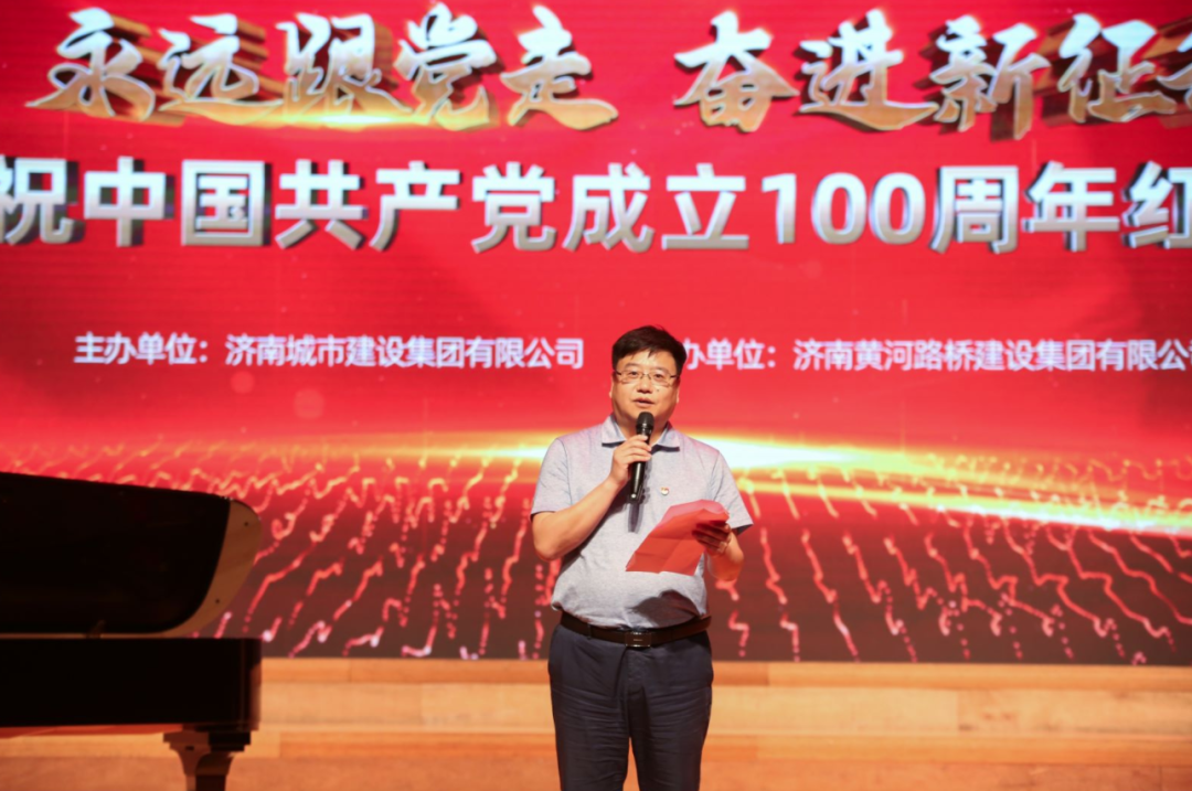 集团领导在致辞中表示,此次“庆祝中国共产党成立100周年红歌会”是集团推动党史学习教育走深走实的一项重要举措,旨在展现集团干部职工爱党爱国、干事创业、奋勇争先的良好精神风貌,教育集团全体员工不忘初心听党话、坚定不移跟党走。广大职工要从红歌中汲取奋斗前行的力量,紧紧围绕全市发展大局,聚焦聚力黄河重大国家战略,践行“三牛”精神,争当国企先锋,全面加快跨黄桥隧、新旧动能转换起步区、科创城等重点项目和片区建设,为加快建设新时代现代化强省会增砖添瓦,以优异成绩庆祝建党100周年。