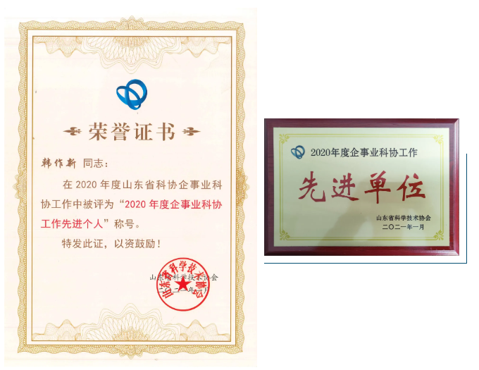 近日,济南金诺公路工程监理有限公司科学技术协会被山东省科学技术协会评为“2020年度企事业科协工作先进单位”;金诺公司科协主席韩作新同志被山东省科学技术协会评为“2020年度企事业科协工作先进个人”。这是对金诺公司多年来科技创新工作的肯定,更是为下一步创新发展提出了更高的要求与目标。