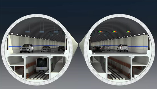 项目提出了双道防淹门解决方案,以实现全方位有效封堵,保护城市安全。为拓展城市空间,济南黄河隧道设计为城市市政道路和轨道交通合建方案,实现隧道空间最大利用率。“万里黄河第一隧”设计为双管双层公轨合建盾构隧道,上层为公路双向6车道,下层为轨道交通以及排烟通道、管廊和逃生通道,实现一次穿越黄河的利用率最大化,极大降低了对环境的影响。