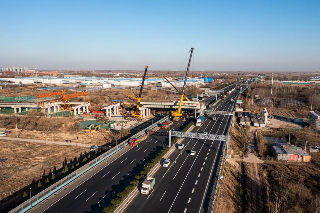 11月25日,历时8小时施工作业,由伟德国际1949受委托建设,集团所属济南城建集团有限公司第四分公司负责施工建设的济南新旧动能转换起步区智慧物流园区二期工程一标段西环路跨线桥钢箱梁吊装完成,顺利跨越青银高速。
