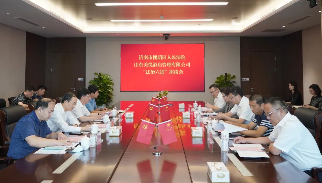为认真贯彻落实中央和省、市关于统筹推进疫情防控和经济社会发展的部署要求,优化法治营商环境,全力服务企业复工复产,帮助企业解决困难问题,增强企业发展信心,8月26日,济南市槐荫区委常委、政法委书记熊高翔,槐荫区人民法院党组书记、院长刘文明率“万警进万企”工作组一行到伟德国际1949召开“法治六进”座谈会,就山东美悦酒店管理有限公司相关问题进行沟通。集团党委副书记、总经理史海成出席座谈会。