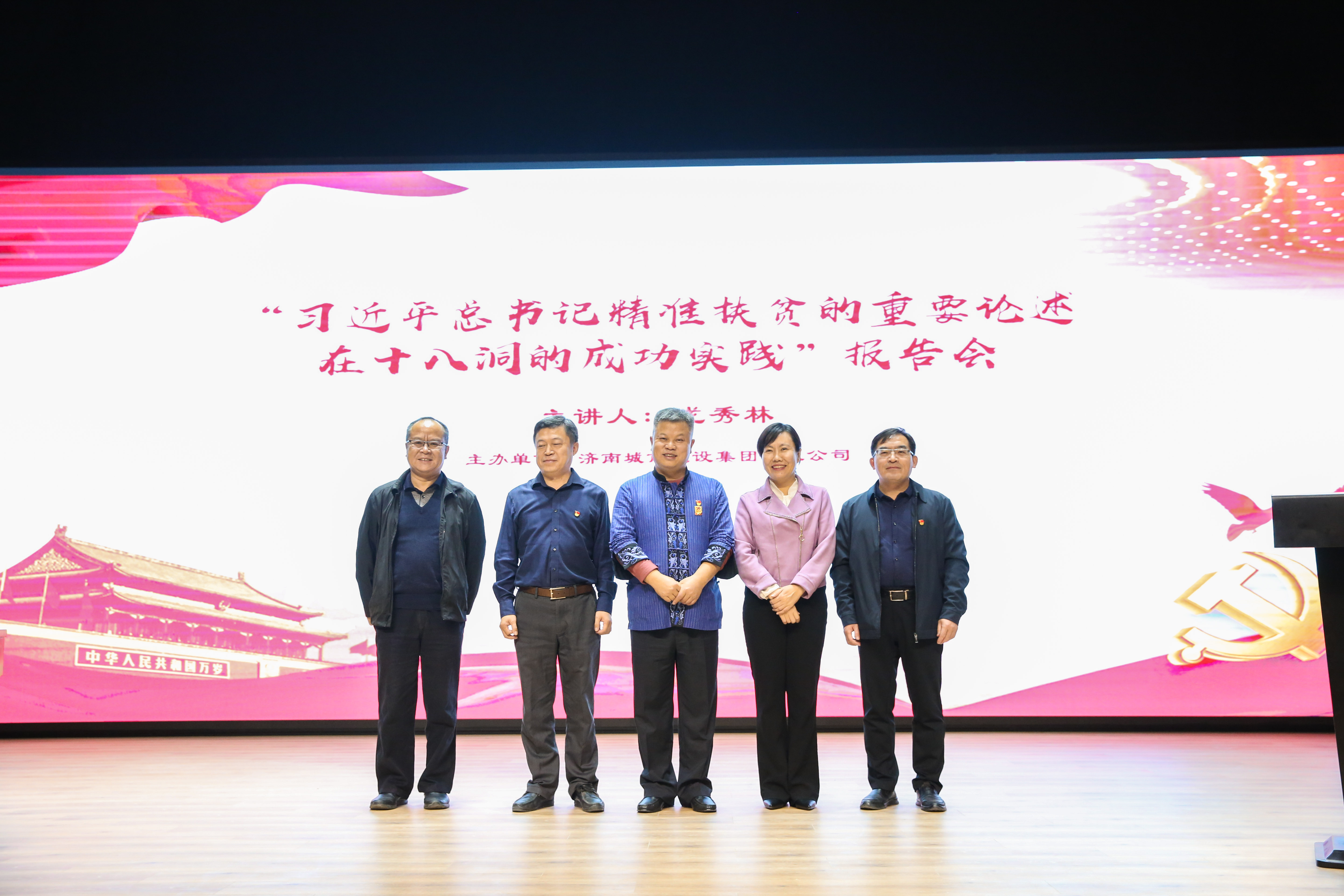 2月25日上午,全国脱贫攻坚总结表彰大会在北京人民大会堂隆重举行。当天上午,济南泉世界商业管理有限公司积极组织党员干部及职工收看大会直播,共同见证中华民族的伟大时刻。在印象济南·泉世界街区办公楼,多名党员干部及职工在认真收看直播之余,更是热议起“花垣县十八洞村”。原来,不少人参与了2020年10月26日在印象济南·泉世界举办的“精准扶贫的重要论述在十八洞的成功实践”报告会,聆听过湘西十八洞村首任扶贫队长龙秀林的脱贫攻坚心得。而在全国脱贫攻坚总结表彰大会上,花垣县十八洞村荣获“全国脱贫攻坚楷模”