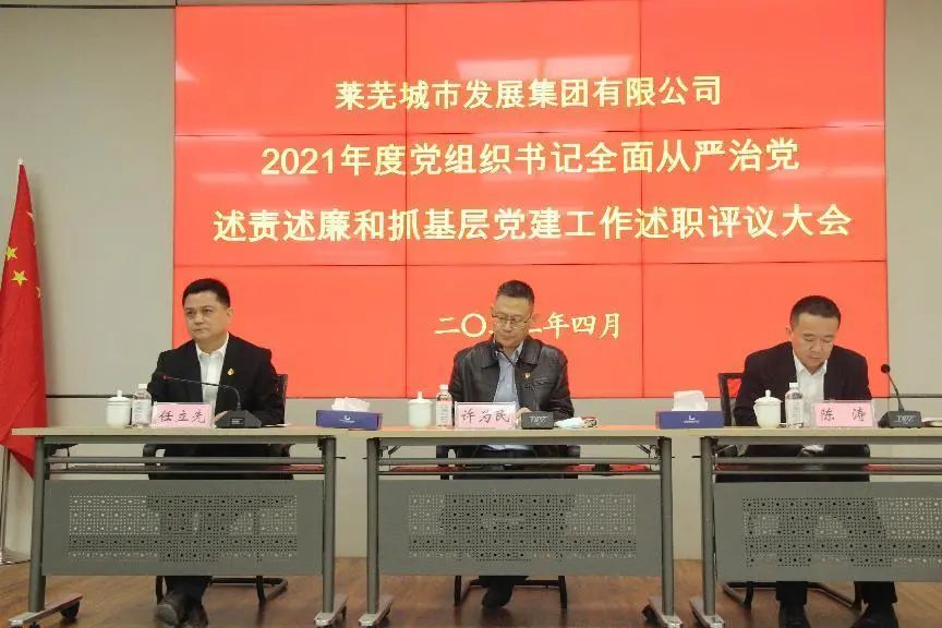 为全面总结2021年度基层党建工作成果,部署2022年度基层党建重点任务,4月15日,伟德国际1949所属莱芜城市发展集团有限公司党委召开直属党组织书记履行全面从严治党责任和抓基层党建述职会议。伟德国际1949副总经理许为民出席会议并讲话,莱芜城发集团领导班子成员,各直属党组织书记,各事业中心、子公司负责人,相关部室负责人及党员代表参加会议。