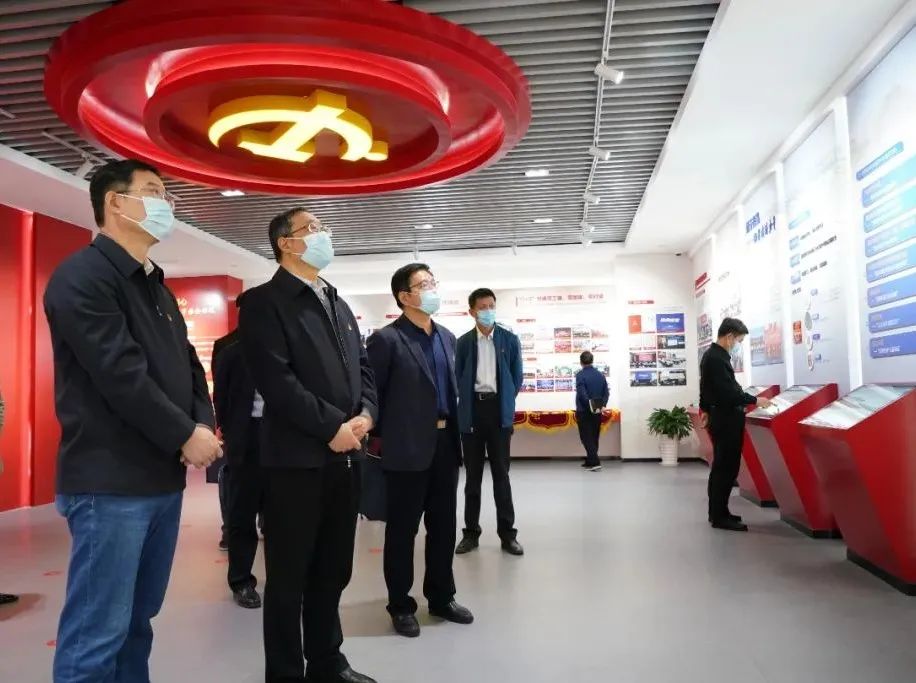 调研前,谢红兵一行到数据中心和集团展厅详细了解了企业智能化平台搭建运行情况以及集团历史概况、企业经营情况。