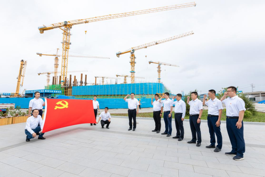 工程一部党支部组织全体党员在腊山河西侧3#地块开展重温入党誓词主题党日活动,推动党建工作与业务工作深度融合,强化党员干部的党性意识和宗旨意识,向党的二十大献礼。