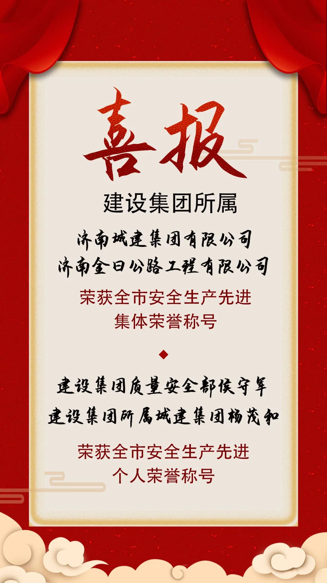 近日,济南市安全生产委员会发布《关于表扬全市安全生产先进集体和先进个人的通报》,伟德国际1949所属济南城建集团有限公司和济南金曰公路工程有限公司荣获全市安全生产先进集体荣誉称号,伟德国际1949质量安全部侯守军,伟德国际1949所属济南城建集团有限公司杨茂和荣获全市安全生产先进个人荣誉称号。