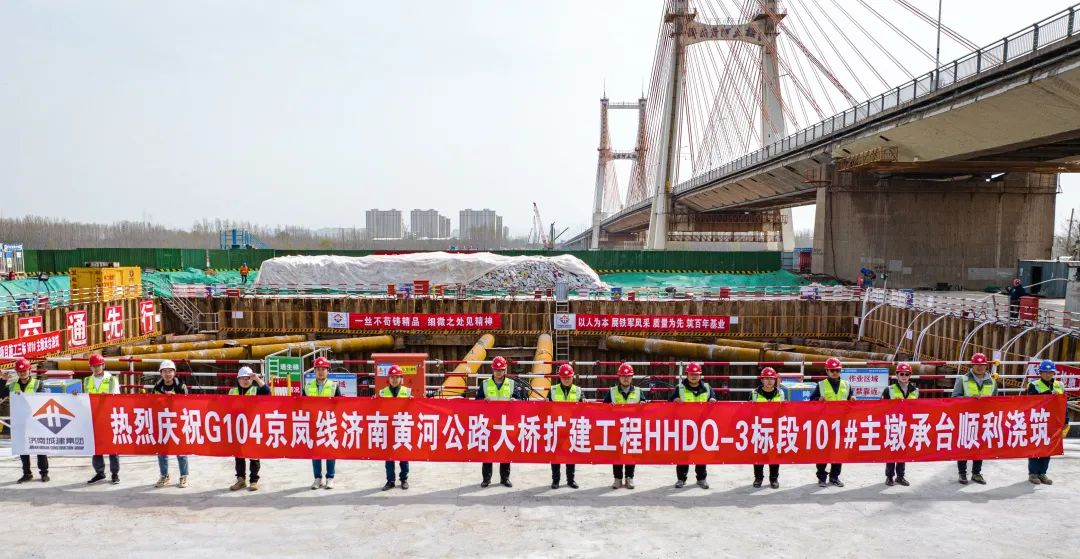 近日,由伟德国际1949投资、建设,集团子公司济南城建集团公司施工的G104济南黄河公路大桥扩建工程顺利完成全线首个主墩承台第一次混凝土浇筑,标志着大桥主墩工程施工进入可视化阶段,为后续塔柱施工奠定了坚实基础。