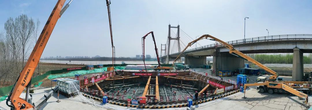 101#主墩承台是主桥段体积最大的承台,项目部科学组织、合理部署,优化各项施工方案,强化技术创新,率先完成首座主墩承台一步混凝土浇筑,有力促进了黄河大桥整体工作平稳推进。