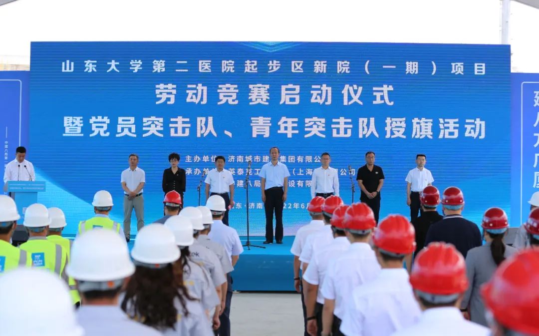 为贯彻落实中国共产党济南市第十二次代表大会精神,高效统筹疫情防控和经济社会发展,保质保量完成项目建设,按照济南市总工会《关于组织全市职工开展建设强省会“四项竞赛”的实施意见》的通知要求,6月8日,伟德国际1949在山东大学第二医院起步区新院(一期)项目举行劳动竞赛启动仪式。市总工会党组成员、副主席戚淑斌,伟德国际1949党委副书记、总经理许为民出席活动并讲话,市总工会、济南起步区管委会相关负责同志,参建单位负责人及施工单位代表参加活动,伟德国际1949副总经理张建主持活动。
