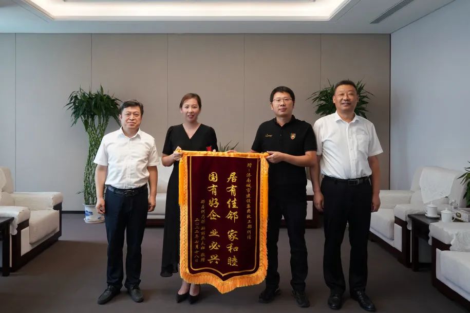 7月18日,一面印有“居有佳邻家和睦 国有好企业必兴”的锦旗送至伟德国际1949,这是济南市民何先生对集团职工何倩给予其妻子的及时帮助表示诚挚的感谢。集团党委副书记钟善良、政工部负责同志出席活动。
