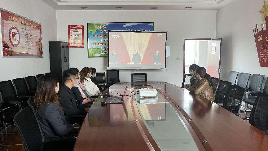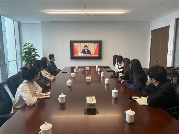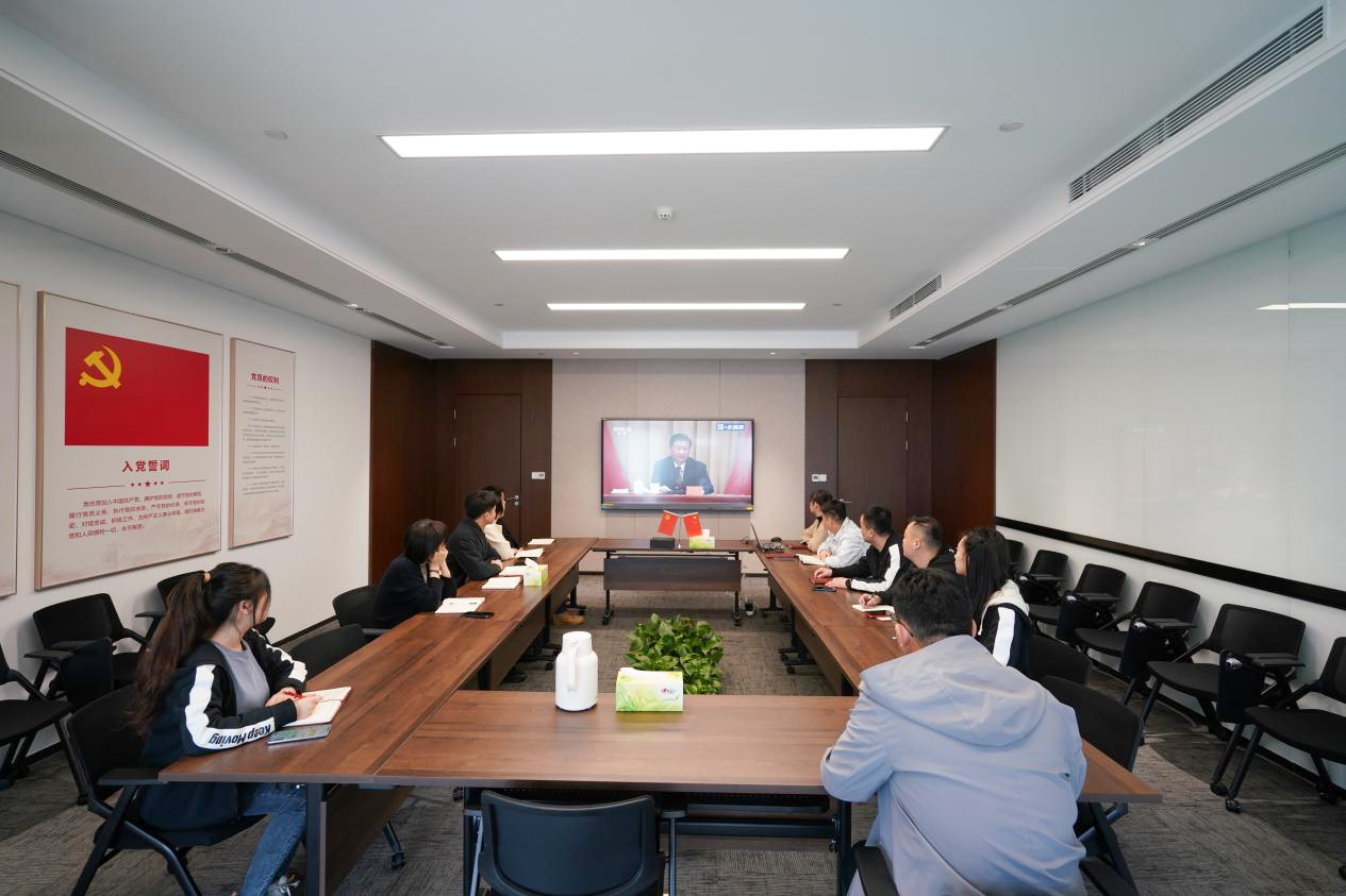 济南伟德国际1949投资有限公司团支部组织在岗团员青年、团干部集中观看直播。