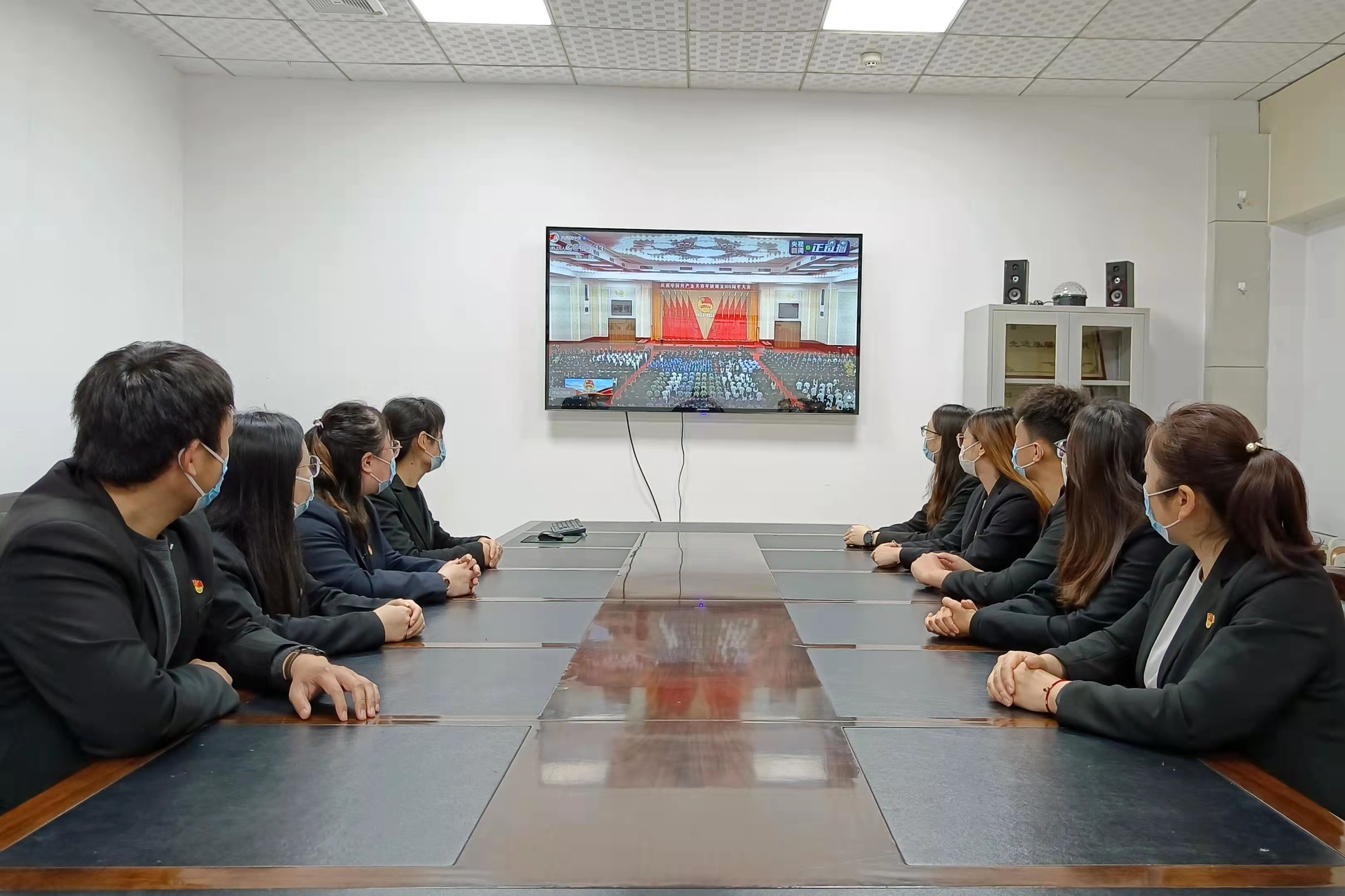 公司团委成员在会议室集中收看,各支部成员结合各自实际,分别组织收看。