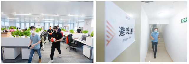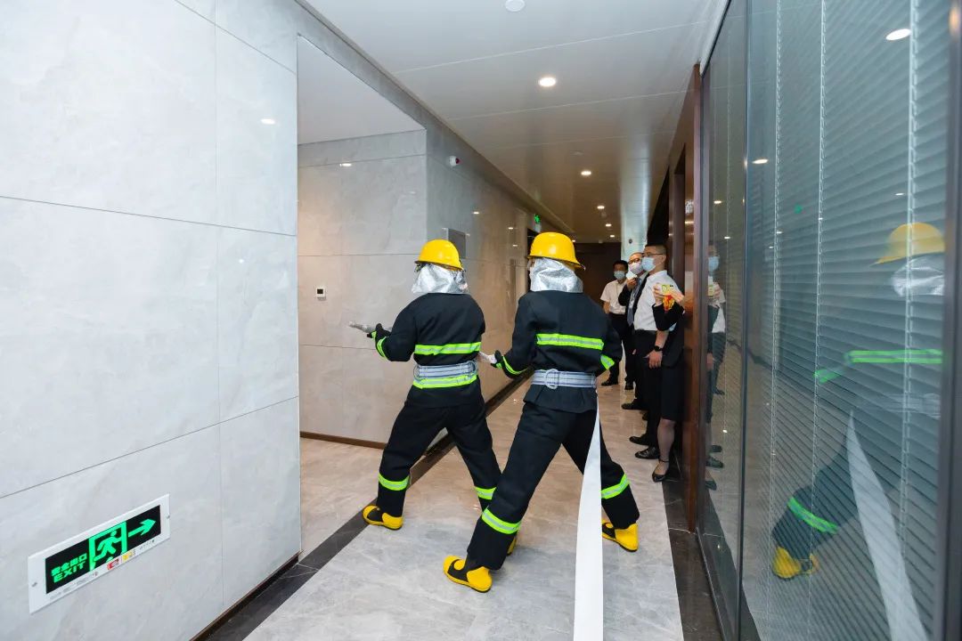 此次消防安全演习共分为楼层火灾发生(处置)、消控室指令发布、物业人员到场处置、现场人员疏散、点评总结五个阶段进行。旨在通过演习进一步强化员工消防安全意识,熟悉掌握在紧急情况下报警、扑救、救护及逃生方法,提升各责任人熟悉和了解应急组织机构和应急工作流程,强化共同协作,提高应急处置能力,确保全体员工的生命安全。