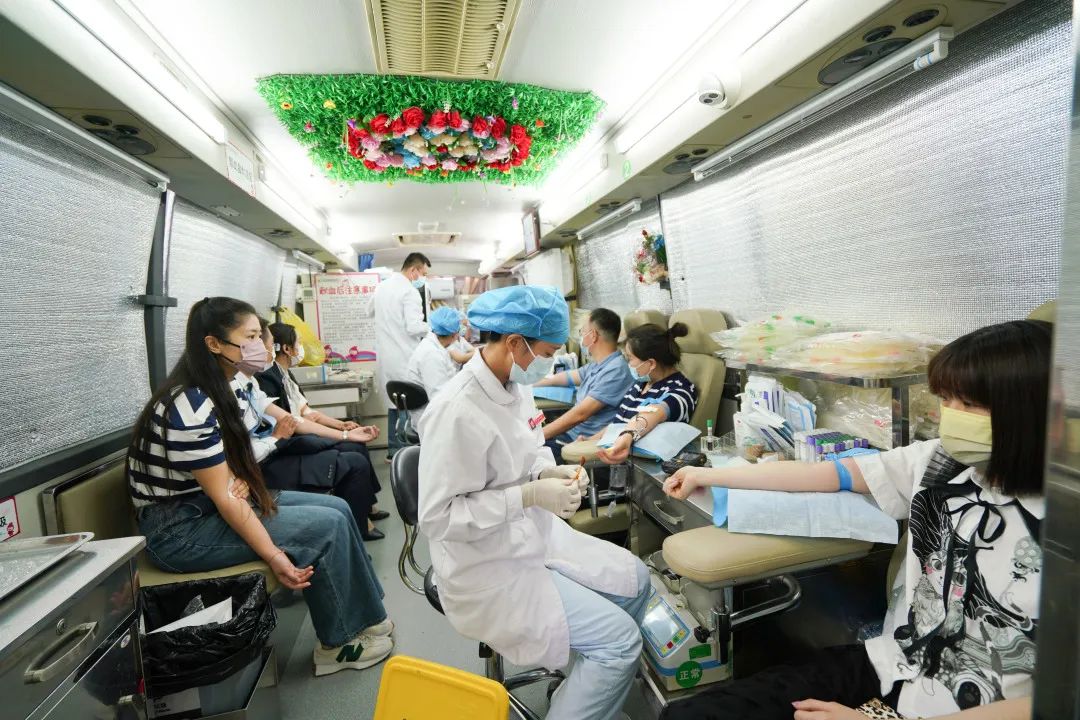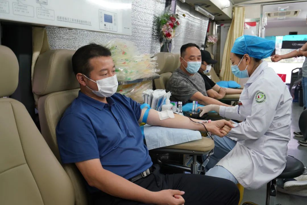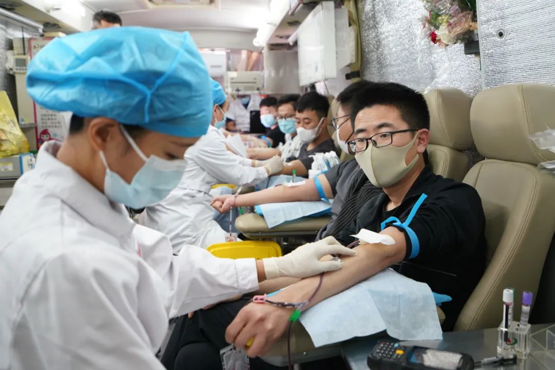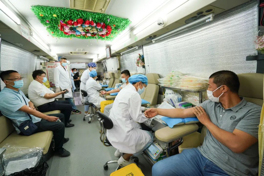 在献血过程中,集团干部职工按照工作人员要求,有序进行登记确认、测量血压、验血检查、采血等工作。