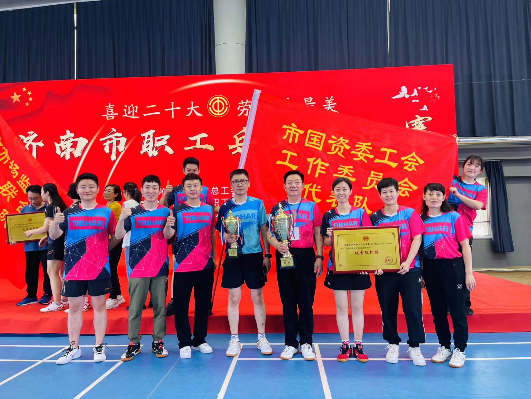 9月17日下午,“喜迎二十大·劳动我最美”济南市职工乒乓球比赛在山东济南工人文化宫职工健身中心闭幕。市总工会常务副主席吕灿华出席闭幕式,并为获奖代表队颁奖。市总工会副主席蒲玉全、经审委主任刘明忠、一级调研员常江,各参赛队运动员代表参加闭幕式。
