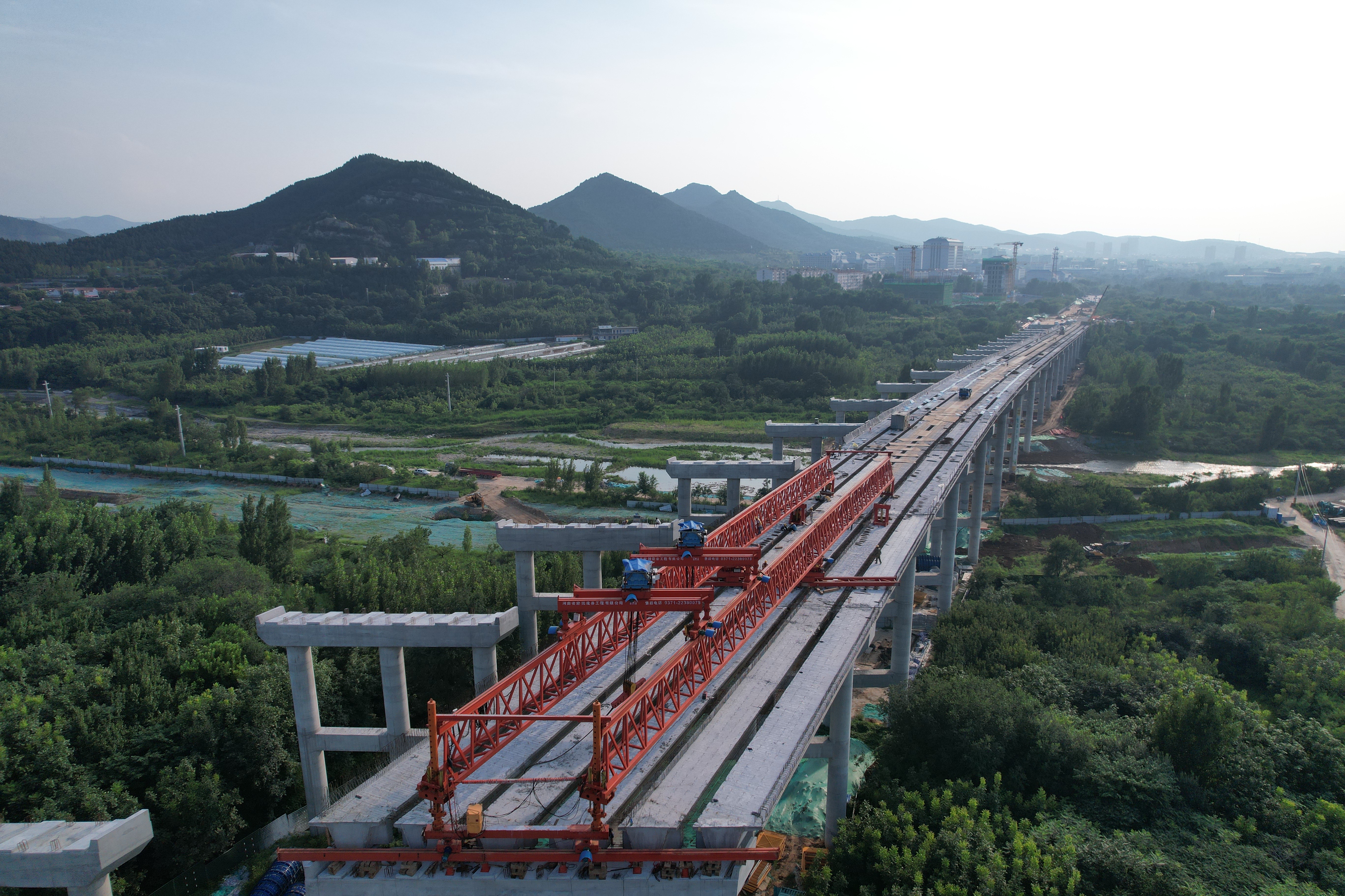 为确保既定目标的顺利完成,金曰公司从架梁方案制定、运梁路线选择、前后场指挥调度等各个环节进行了详尽周密的部署,增加运梁车数量,提前将待架梁板运至现场,做到“梁板排队等桥机”,实现每天完成一跨梁板架设的目标。