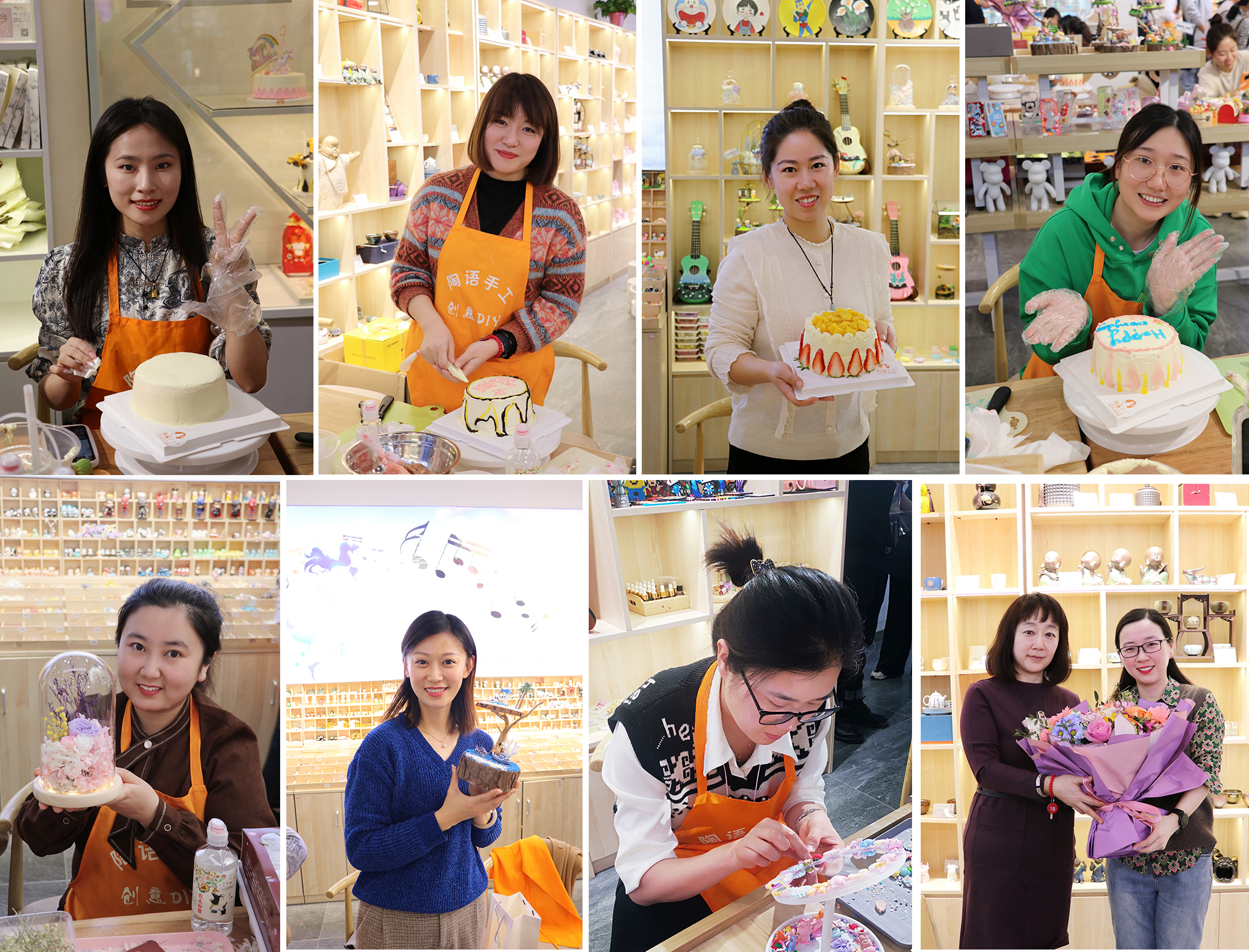 女职工们各显身手,尽情释放自己的想象力,不一会,一个个精致漂亮的手工艺品、一个个美味可口的蛋糕在大家手中诞生,看着自己的劳动成果,大家笑语连连,收获了喜悦快乐与满满的成就感。