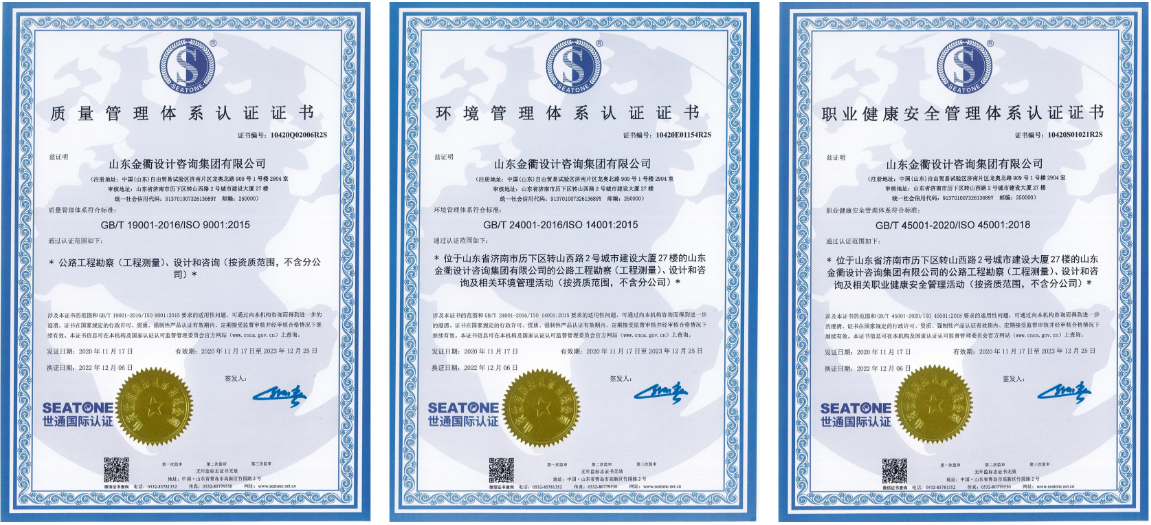 多年来,金衢设计集团一直高度重视管理体系认证工作,与山东世通国际认证中心保持精准互动,跟踪联系对接,积极筹划准备,顺利完成了管理体系换版、再认证和年度监审等一系列评估验收工作。