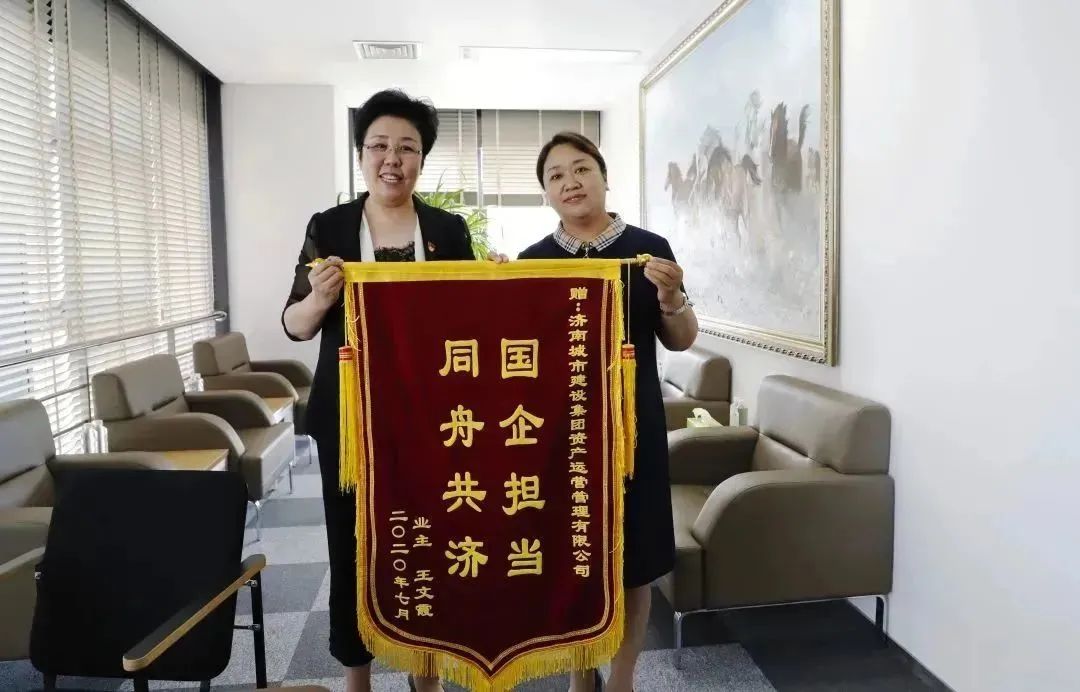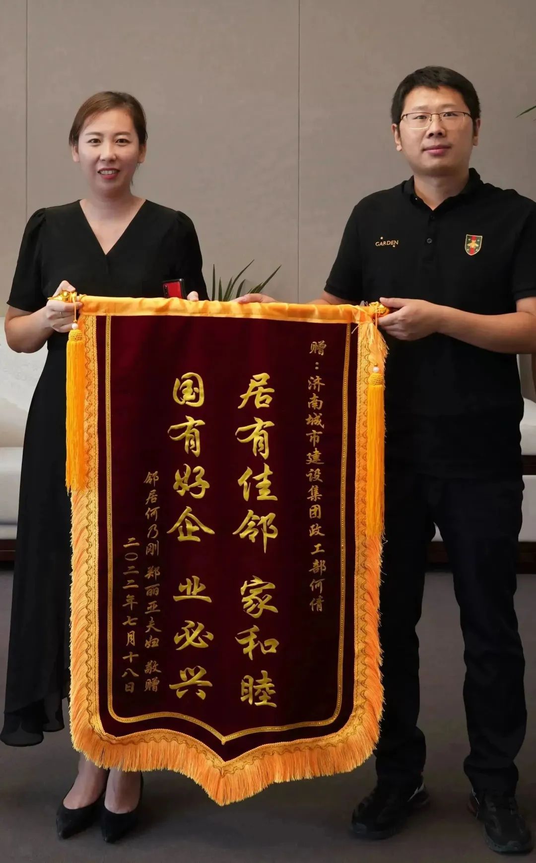 一面“居有佳邻家和睦 国有好企业必兴”的锦旗送至伟德国际1949,这是济南市民何先生对何倩给予其妻子的及时帮助所表示的诚挚感谢。