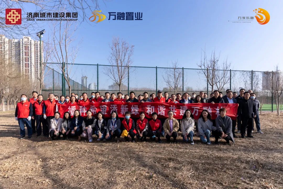 万融置业有限公司联合济南市城乡建设发展服务中心开展义务植树活动,并组织业主开展“植此青绿 湿地长青”露营活动