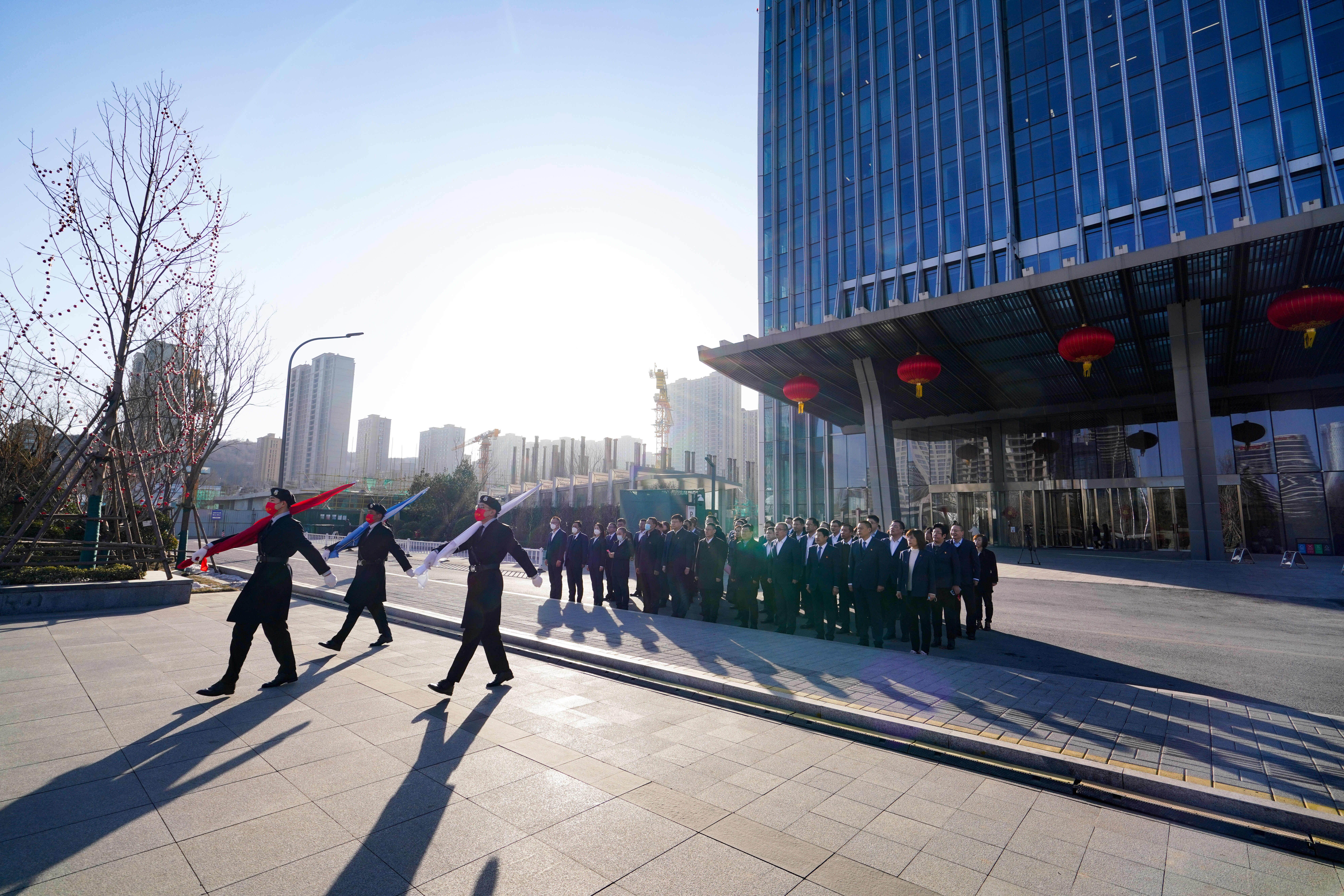 在建设大厦一楼大厅,集团领导代表集团党委、董事会,向全体职工致以新春的问候和祝福,并表示,新一年的工作已经全面开启,希望大家迅速收心、调整状态,切实把思想和行动统一到集团党委的各项决策部署上来,全力以赴投入新年各项工作中。