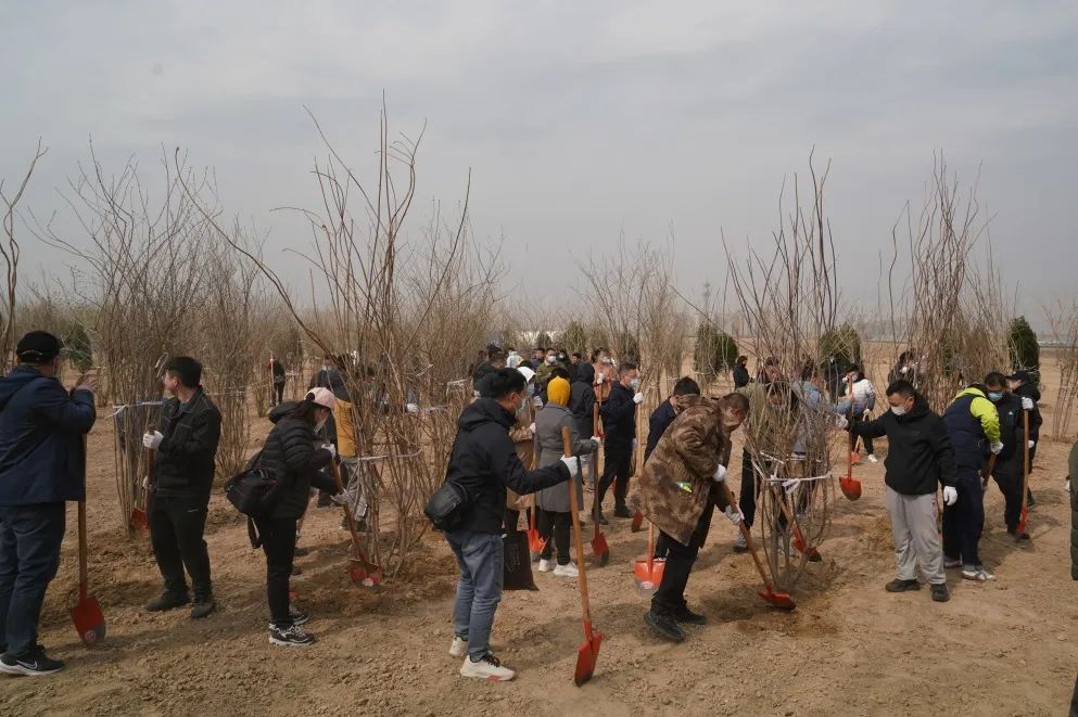 植树活动中,大家在工作人员的指引下,密切合作、分工配合,在树木种植范围内,深挖基础,厚培春壤,种下数百棵树苗,为泉城济南增添新绿。