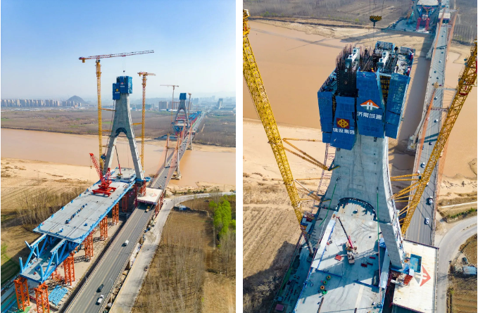 目前黄河大桥主桥,下部结构施工完成,主桥主塔总高度168.6米,已施工至156.3米,即将封顶;钢桁梁架设完成50%;零点立交济南西岗收费站及跨将军路南侧匝道桥拆除完成,正在进行新建匝道现浇箱梁施工。下一步,伟德国际1949将集中优势资源、优势力量、优势管理、科学组织、有序推进,确保项目按时间节点有序推进。