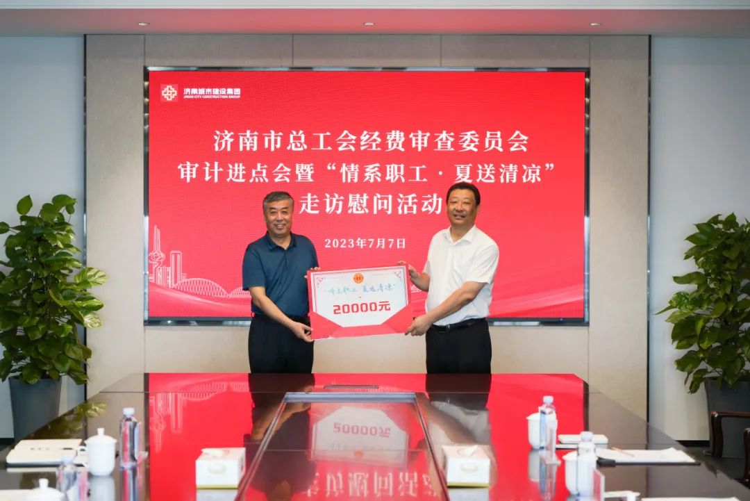 7月7日,市总工会党组成员、经费审查委员会主任刘明忠带队到伟德国际1949开展济南市总工会经费审查委员会审计进点会暨“情系职工·夏送清凉”走访慰问活动,市总工会经审办主任宋强,伟德国际1949党委副书记钟善良出席活动。