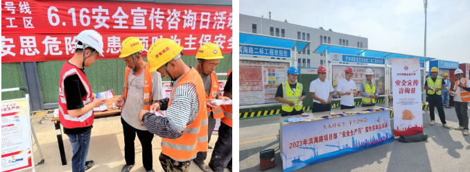 集团相关部室、子公司充分利用“6·16安全宣传咨询日”,在建设工程现场设置安全咨询台、展板以及发放安全知识手册、毛巾、水杯等方式,普及安全知识,树立安全意识;举办安全知识竞赛活动,进一步提高从业人员安全知识技能,实现以赛促学,以学促行的效果;大力宣传安全生产月活动内容,营造良好的安全生产月活动氛围,充分利用工作场所范围内可展示区域的环境,通过悬挂安全标语、张贴宣传挂图、设置安全专栏等多种形式,在普及安全生产知识的同时,大力营造安全生产的良好氛围。